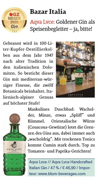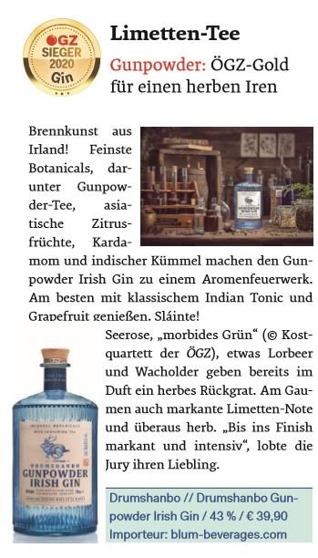 ÖGZ - Die Fachzeitschrift für Gastronomie, Hotellerie und Tourismus hat auch heuer wieder zahlreiche Gins einer Blindverkostung unterzogen und zwei unserer Marken das ÖGZ Gütesiegel 2020 in Gold verliehen.